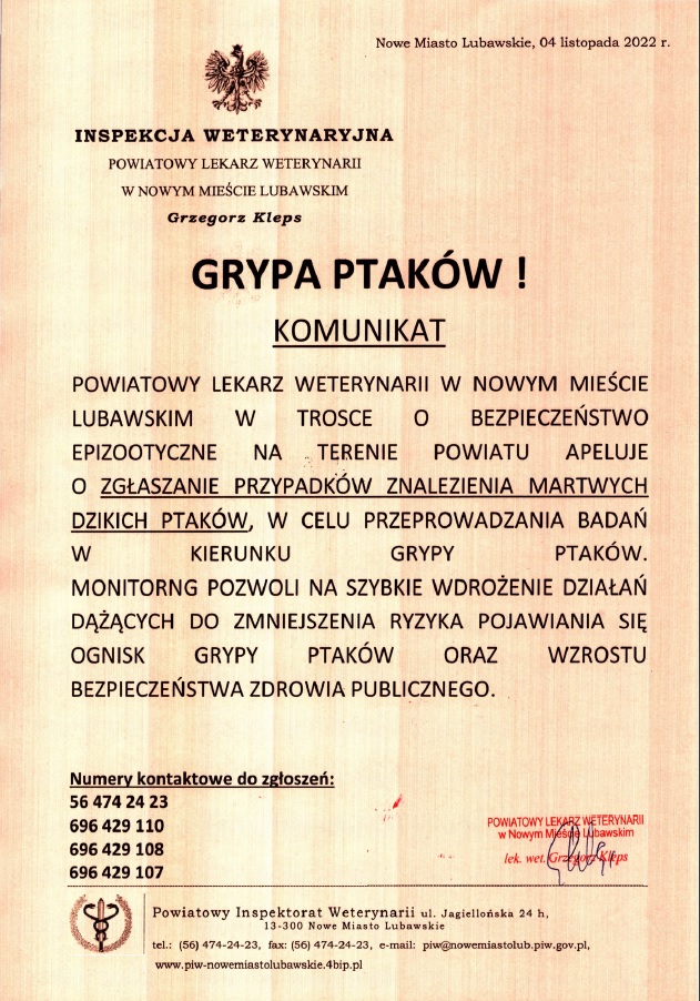 Apel Powiatowego Lekarza Weterynarii o zgłaszanie przypadków znalezienia martwych dzikich ptaków
