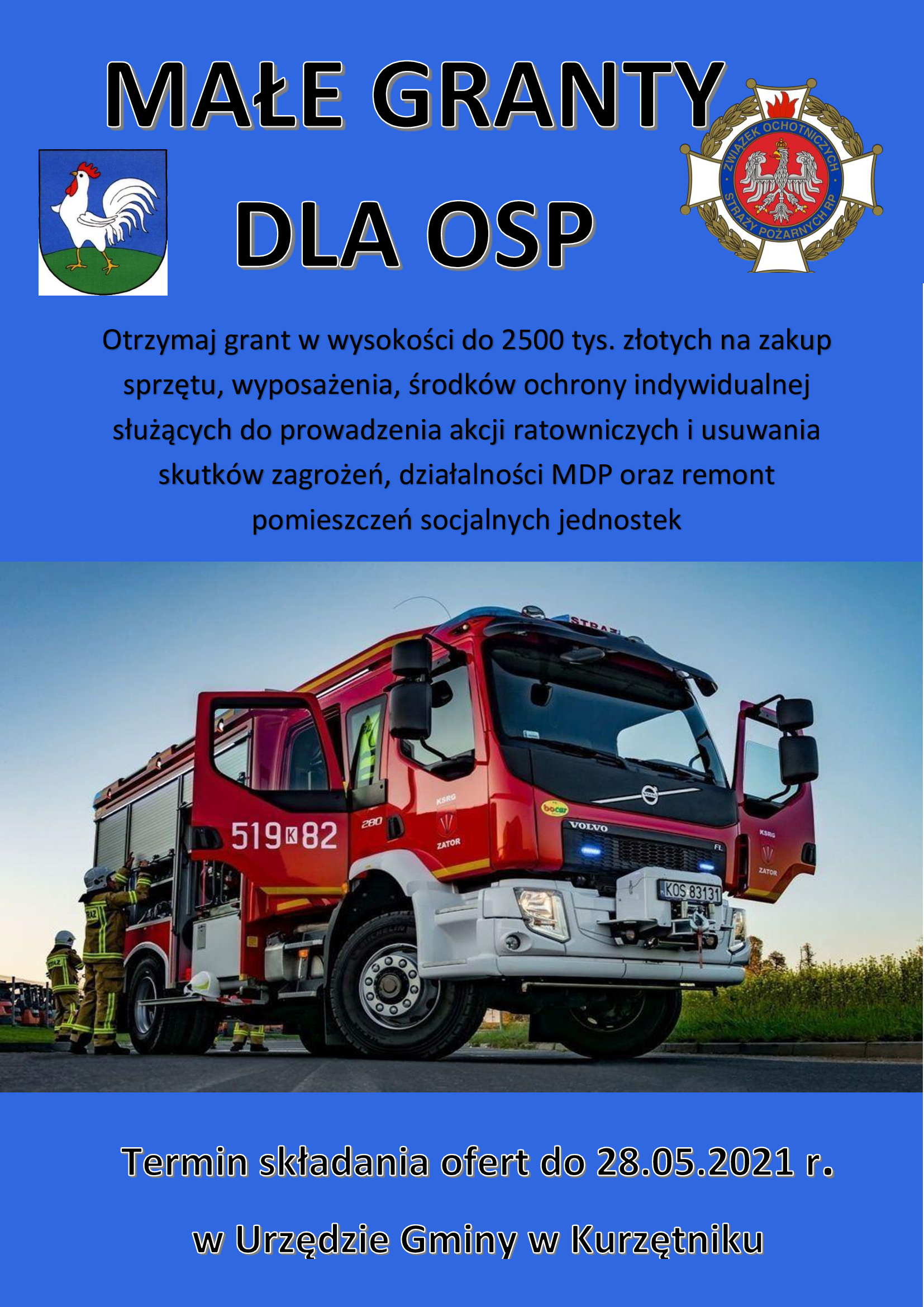 MAŁE GRANTY DLA OSP TERMIN SKŁADANIA OFERT DO 28.05.2021 R.