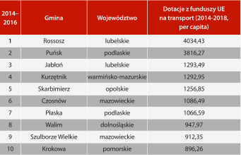 w Rankingu wykorzystania środków europejskich na inwestycje transportowe 2014–2018. Ranking opublikowało Pismo Samorządu Terytorialnego "Wspólnota".