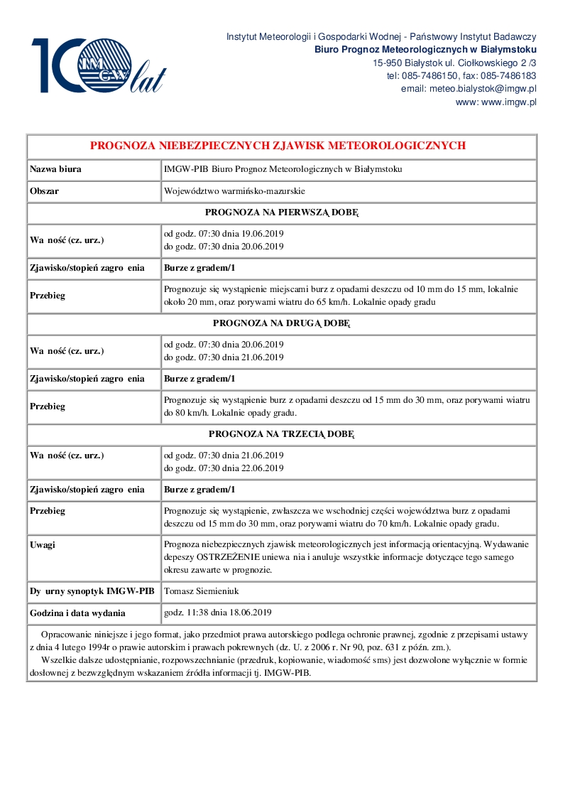 WOJEWÓDZTWO WARMIŃSKO-MAZURSKIE OSTRZEŻENIA METEOROLOGICZNE ZBIORCZO NR 95
