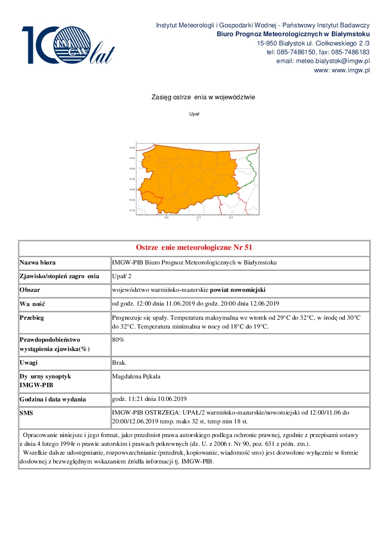 Ostrzeżenie meteorologiczne Nr 51