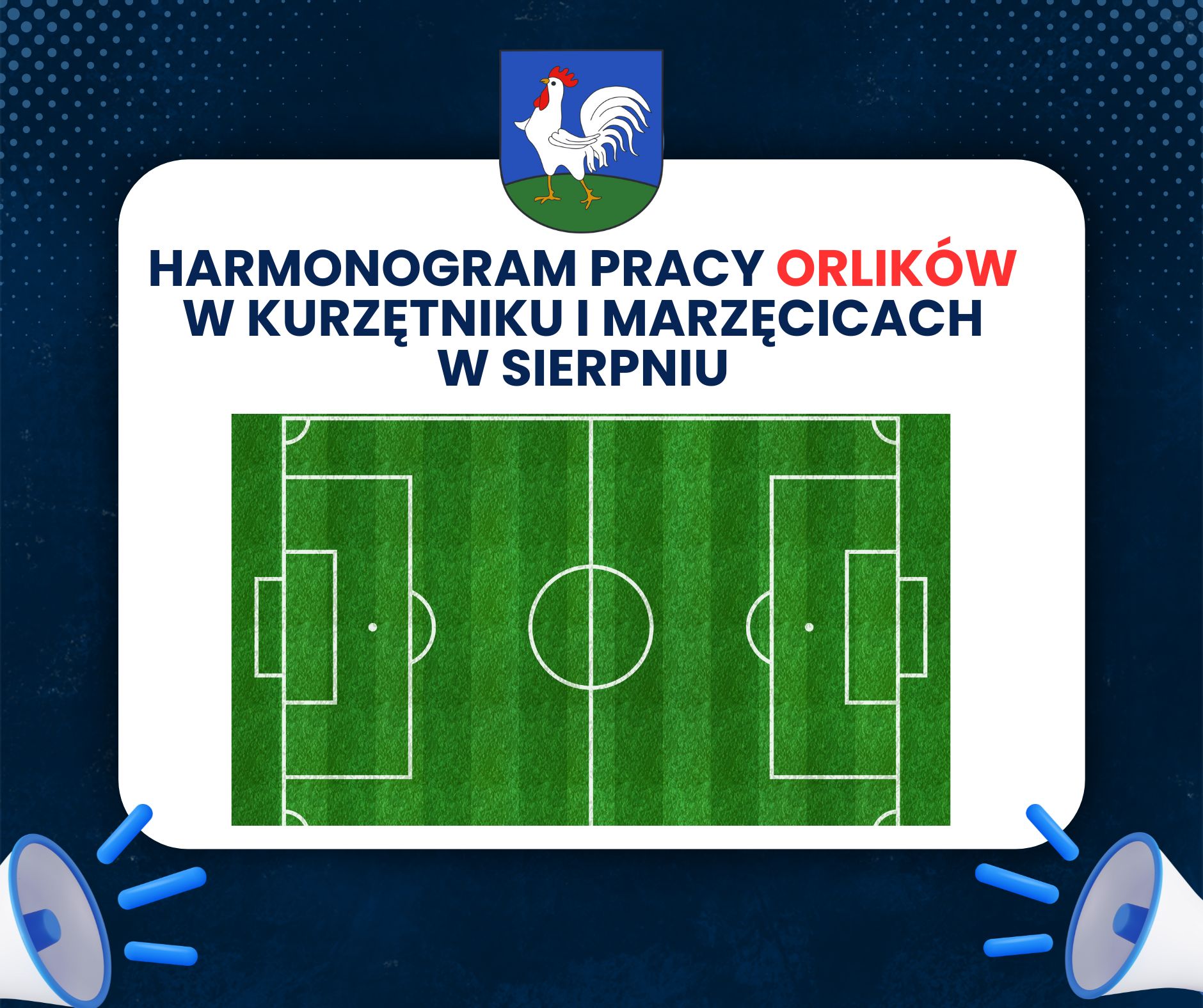 Harmonogram pracy orlików w Kurzętniku i Marzęcicach w sierpniu.