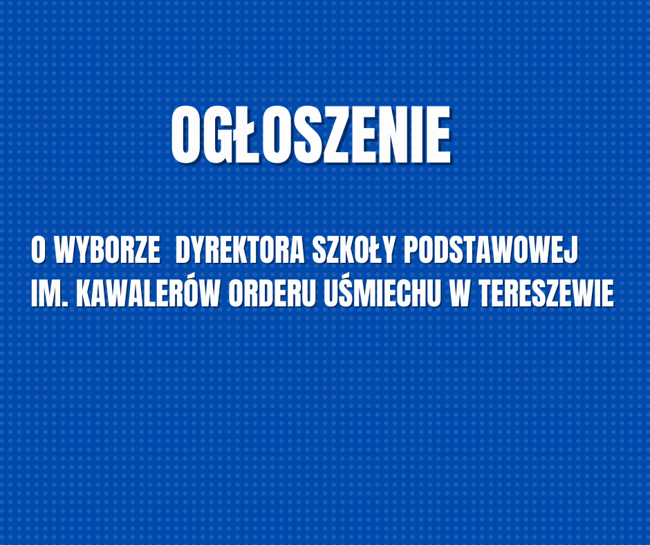 Ogłoszenie o wyborze Dyrektora Szkoły Podstawowej im. Kawalerów Orderu Uśmiechu w Tereszewie