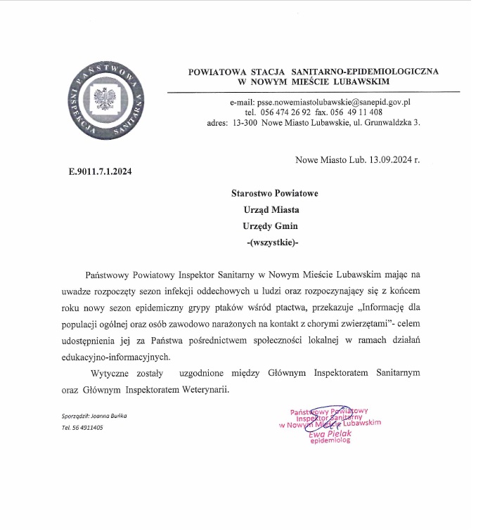 GRYPA PTAKÓW INFORMACJA DLA POPULACJI OGÓLNEJ ORAZ OSÓB ZAWODOWO NARAŻONYCH NA KONTAKT Z CHORYMI ZWIERZĘTAMI
