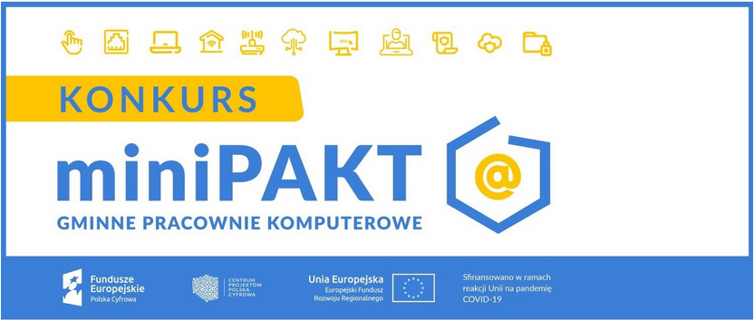 Zadania dofinansowanego ze środków Unii Europejskiej z Programu Operacyjnego Polska Cyfrowa na lata 2014-2020, Oś Priorytetowa V Rozwój cyfrowy JST oraz wzmocnienie cyfrowej odporności na zagrożenia REACT-EU, działanie 5.1 Rozwój cyfrowy JST oraz wzmocnienie cyfrowej odporności na zagrożenia - projekt grantowy pn. „miniPAKT – gminne pracownie komputerowe”