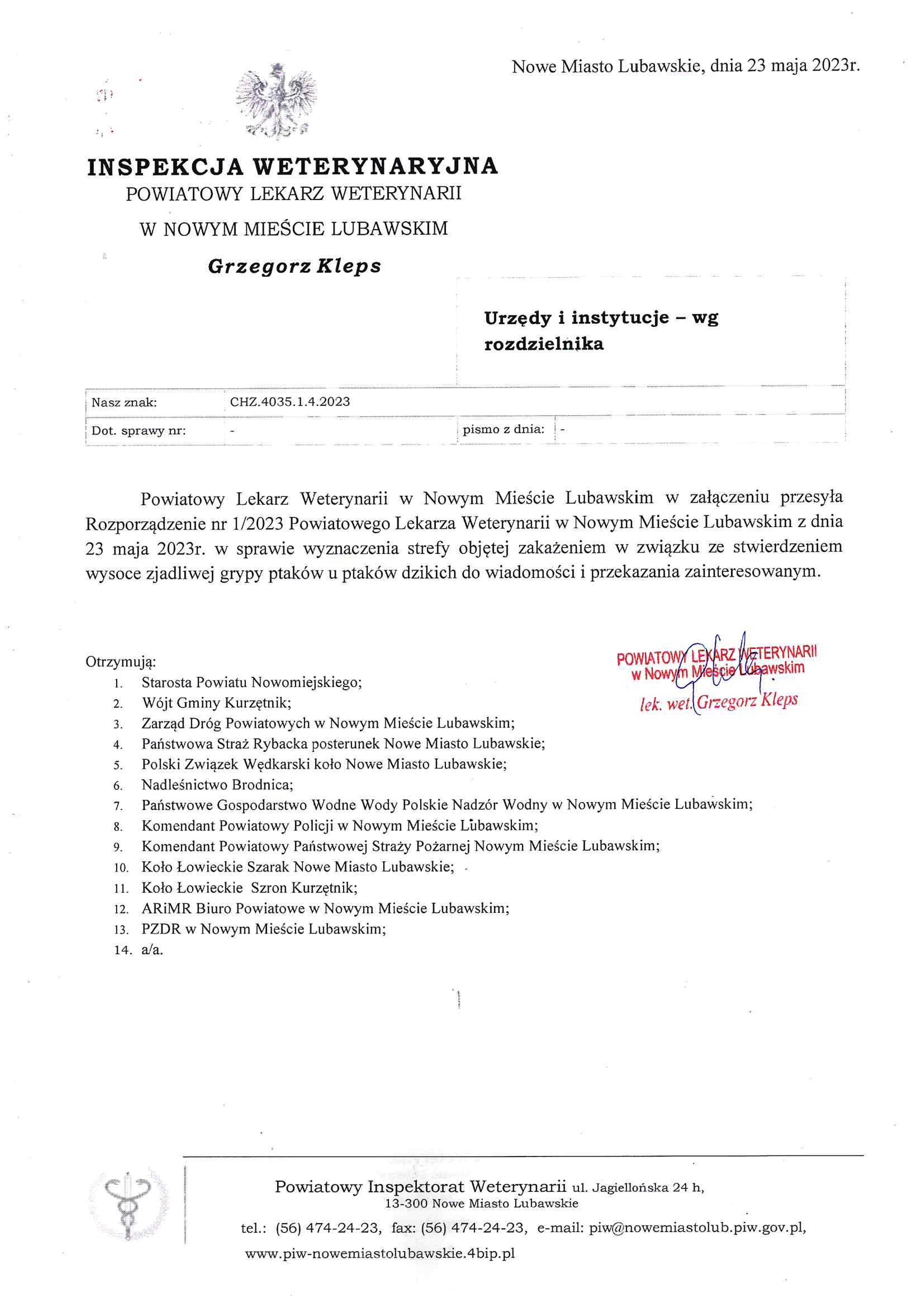 Powiatowy Lekarz Weterynarii w Nowym Mieście Lubawskim informuje
