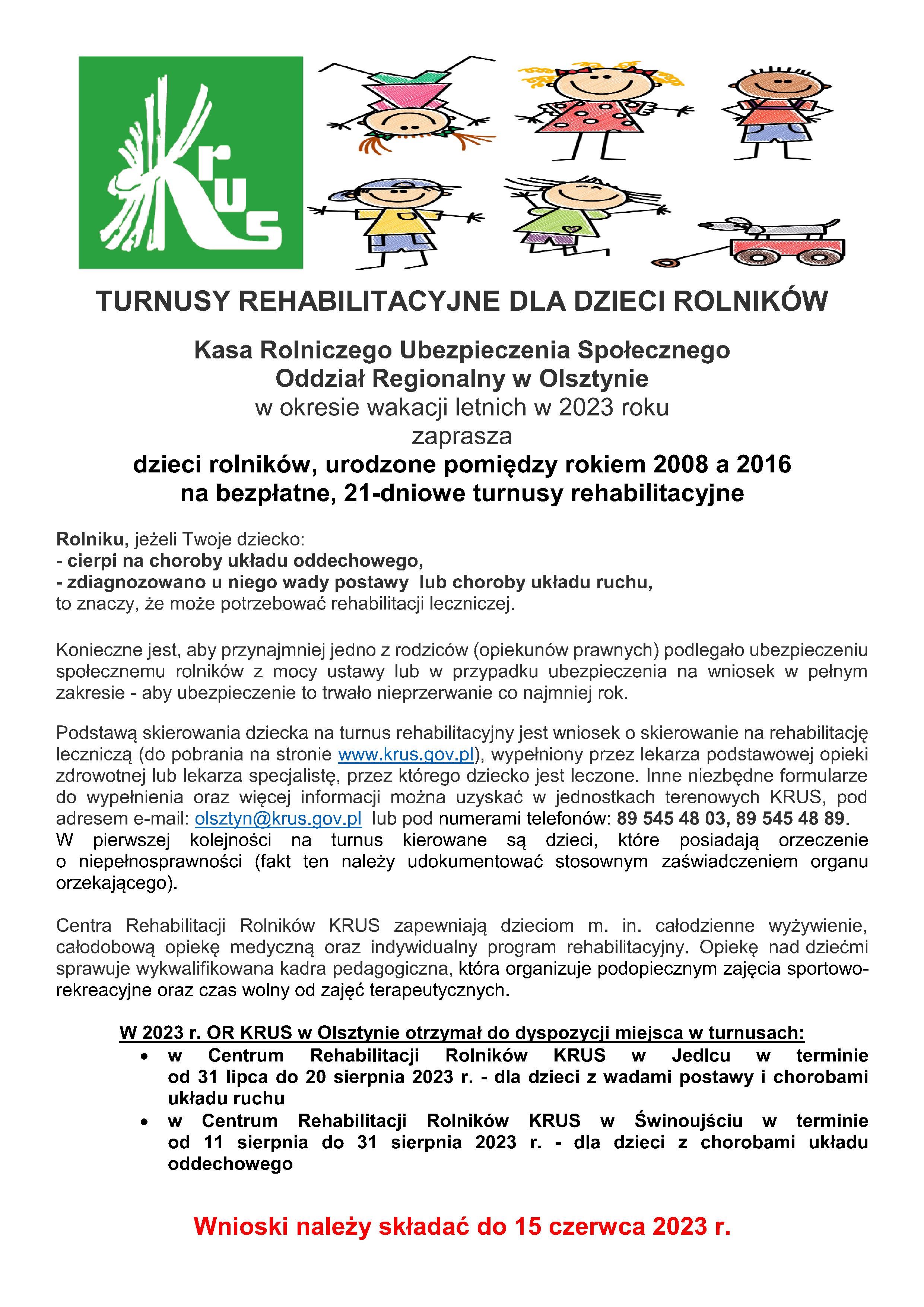Letnie turnusy rehabilitacyjne dla dzieci rolników.
