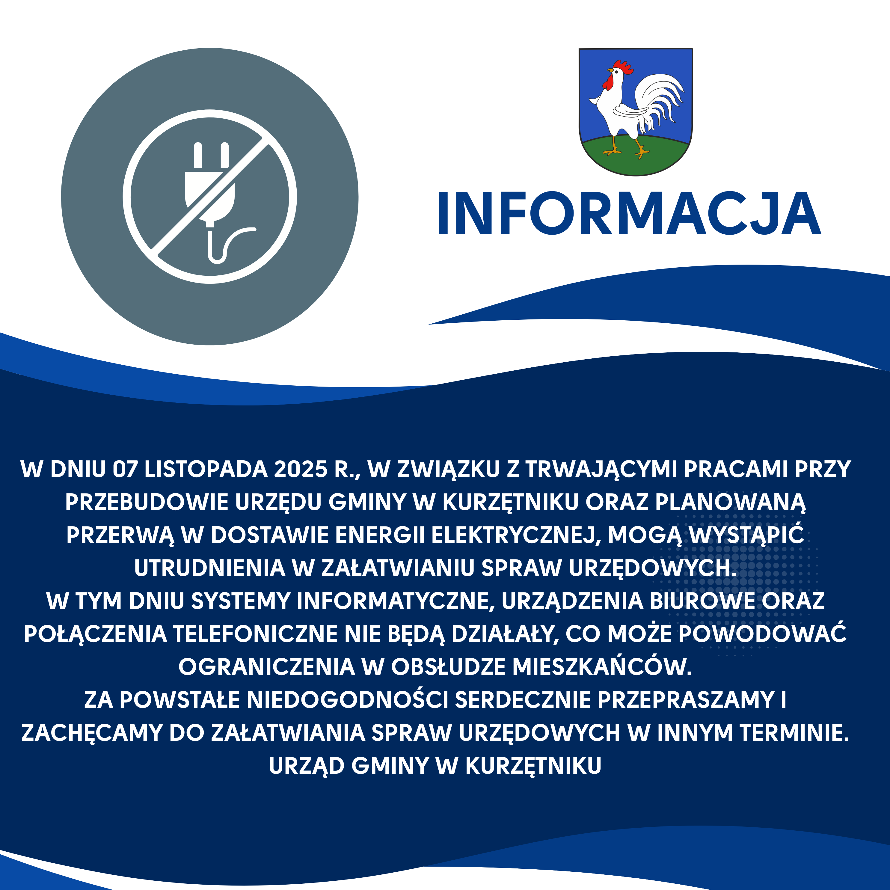Informacja o utrudnieniach w obsłudze interesantów dnia 07.11.2025.r