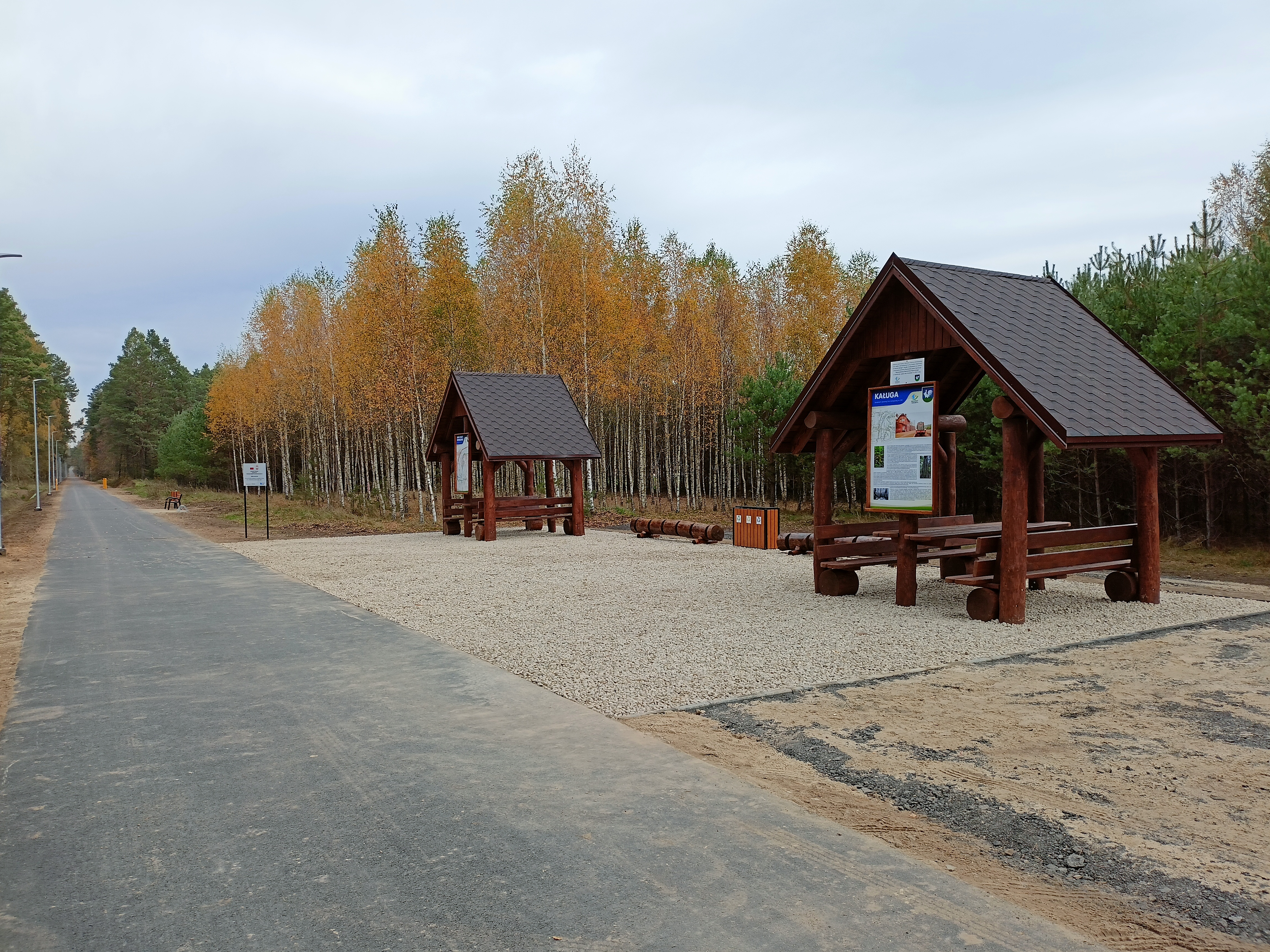 Strefa wypoczynku powstała na końcu nowo wybudowanej ścieżki rowerowej z Kurzętnika do Kaługi, co stanowić będzie doskonałe miejsce, w którym użytkownicy ścieżki rowerowej będą mogli odpocząć podczas podróży, schronić się przed deszczem lub zjeść posiłek w otoczeniu lasu.