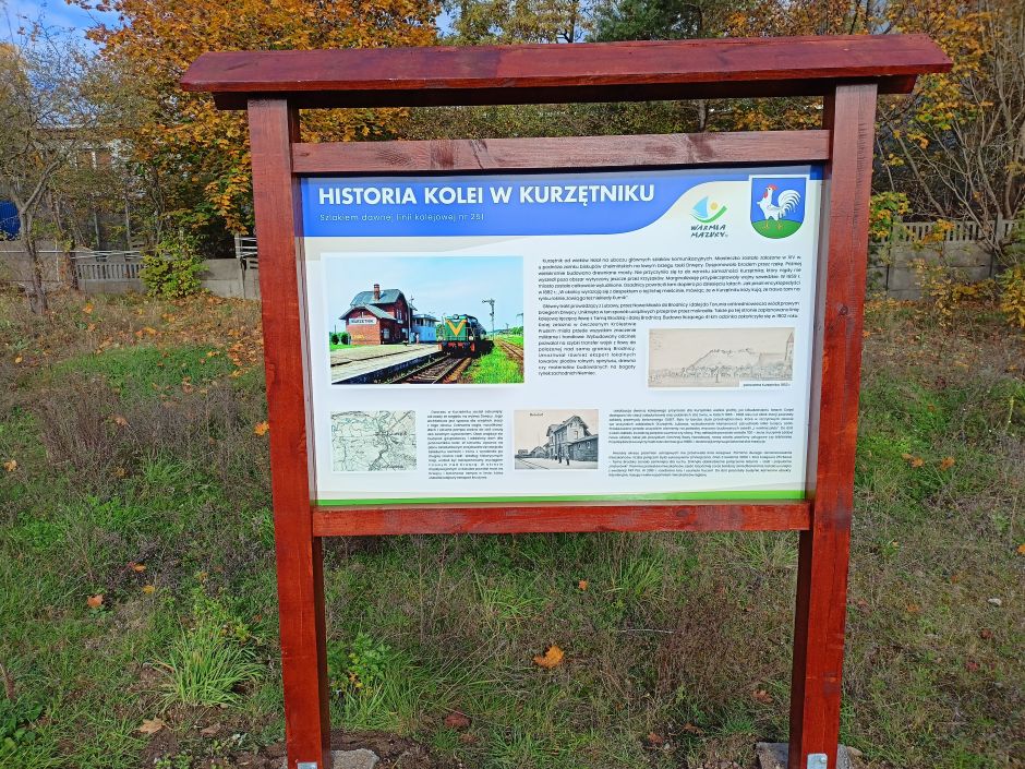 Dzięki wsparciu finansowemu Województwa Warmińsko-Mazurskiego w ramach konkursu „Łączy nas turystyka” w 2022 roku oraz środkom finansowym partnera projektu Zakładu Gospodarki Komunalnej Sp. z o.o. w Kurzętniku, Gmina Kurzętnik zrealizowała projekt polegający na budowie miejsca postojowego oraz tablic informacyjnych przy ścieżce rowerowej Kurzętnik-Kaługa. W ramach zadania przy ścieżce rowerowej stanęły 4 tablice turystyczno-historyczne, których mottem przewodnim była historia wybudowanej w 1902 roku linii kolejowej relacji Iława-Tama Brodzka oraz przyroda doliny rzeki Drwęcy. Dodatkowo dwie tablice znajdują się na wiatach w miejscu postojowym dla rowerzystów, gdzie poza pięknymi wiatami powstały drewniane stojaki na rowery oraz kosz do segregacji odpadów.