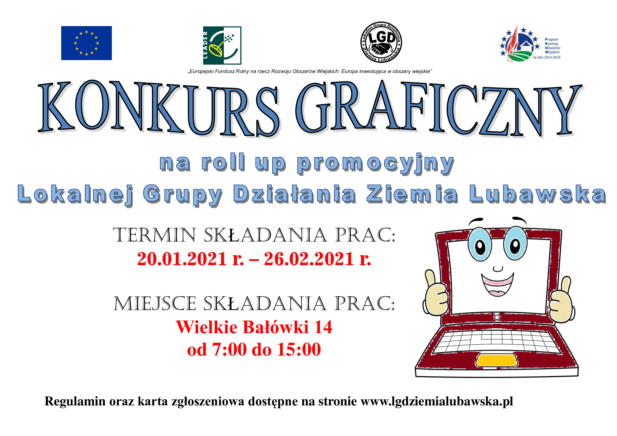 Uprzejmie przypominamy o trwającym konkursie graficznym na roll'up promocyjny. Konkurs kierowany jest do wszystkich osób powyżej 15 roku życia z terenu funkcjonowania LGD Ziemia Lubawska.