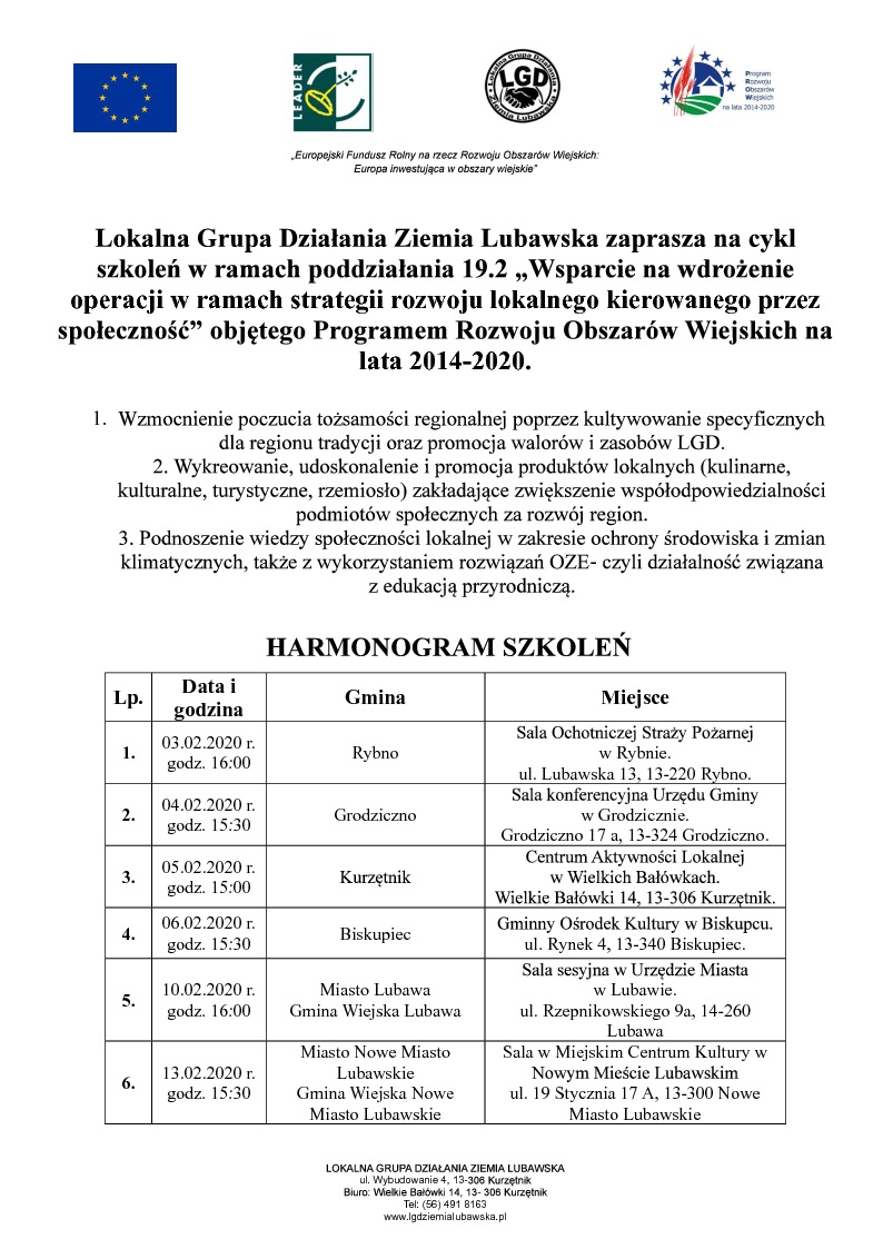 Harmonogram szkoleń dotyczących Małych Grantów